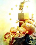Így aztán Pancsinelló hazament. Leült az ablak elé, és nézte, hogyan rohangálnak ide-oda a manók, csillagokat és szürke pontokat osztogatva egymásnak. „Ez így nincs rendjén” – suttogta, és elhatározta, hogy elmegy Élihez.