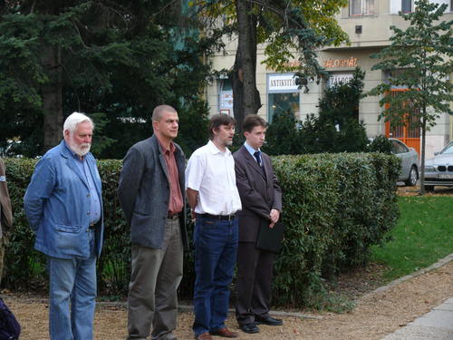 | SzePi képek > A 2008/09-as tanév eseményei képekben > Koszorúzás Dugonics szobránál (2008.10.16) |