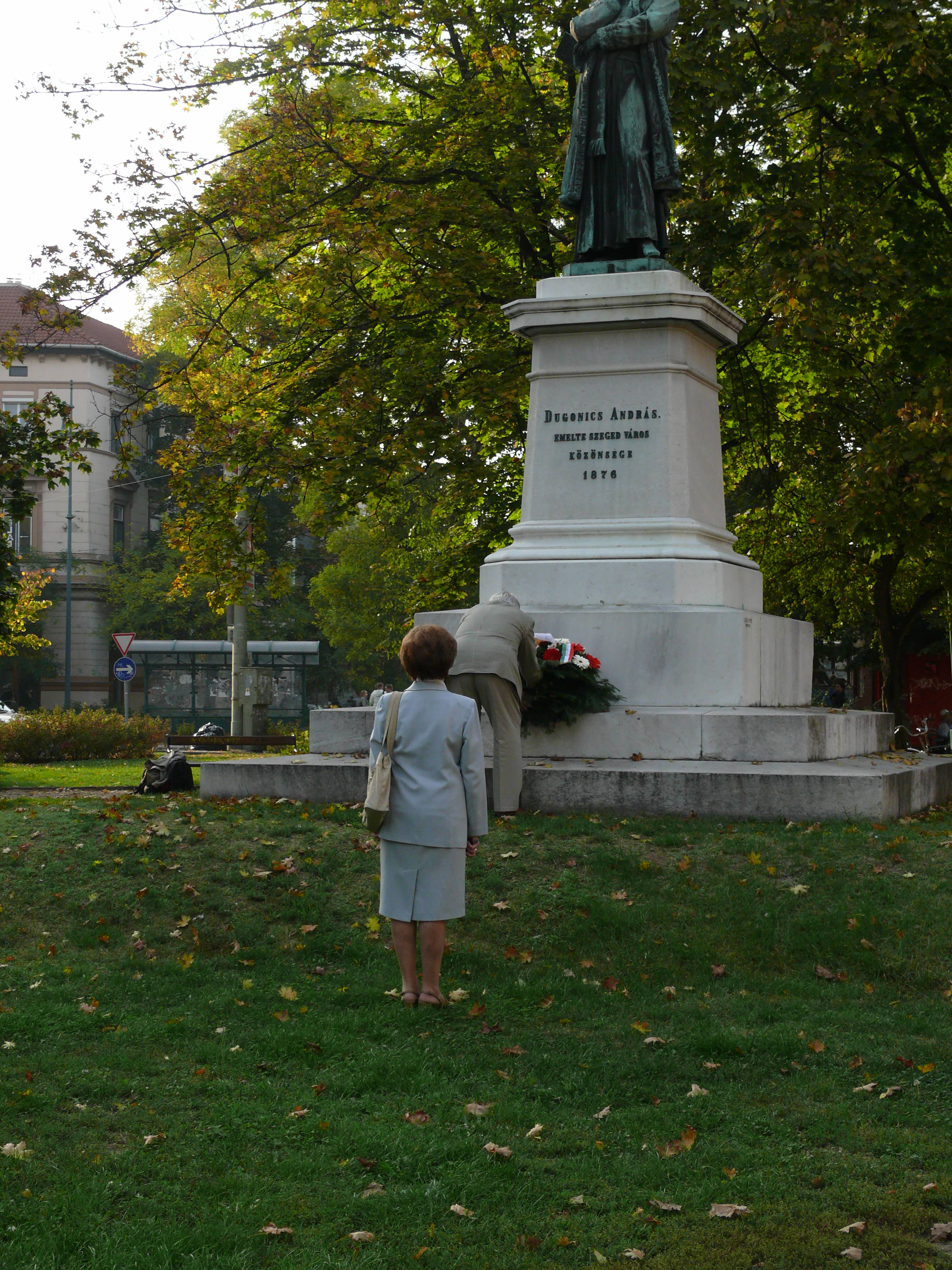 | SzePi képek > A 2008/09-as tanév eseményei képekben > Koszorúzás Dugonics szobránál (2008.10.16) |
