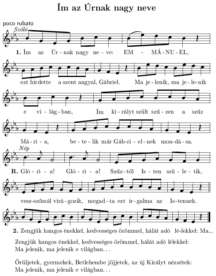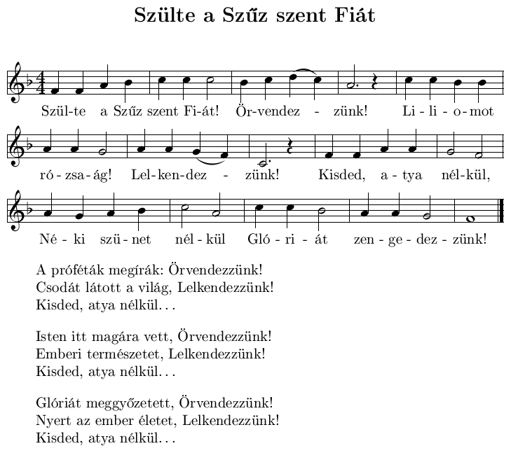 - Szűz Mária e világra nékünk szent Fiát hozá